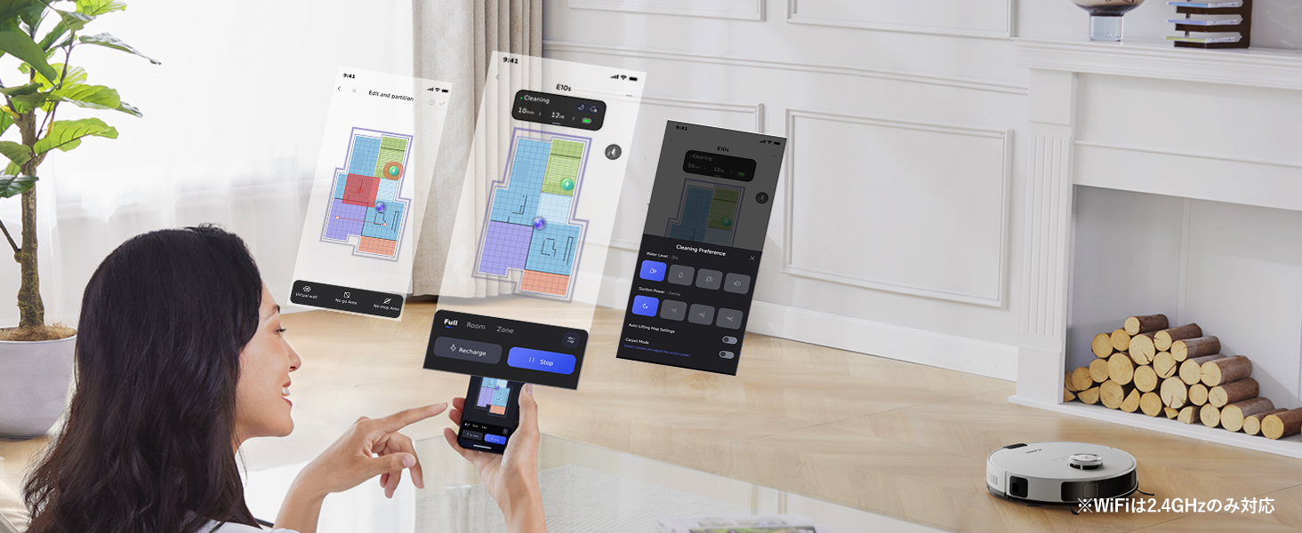 E10sは、最新のLDSレーザーマッピング技術を採用し、部屋の間取りを正確に把握!