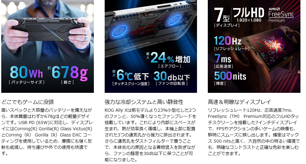 ROG Ally X自体はメーカー公式のゲーミングPCなので、安心して使えます!