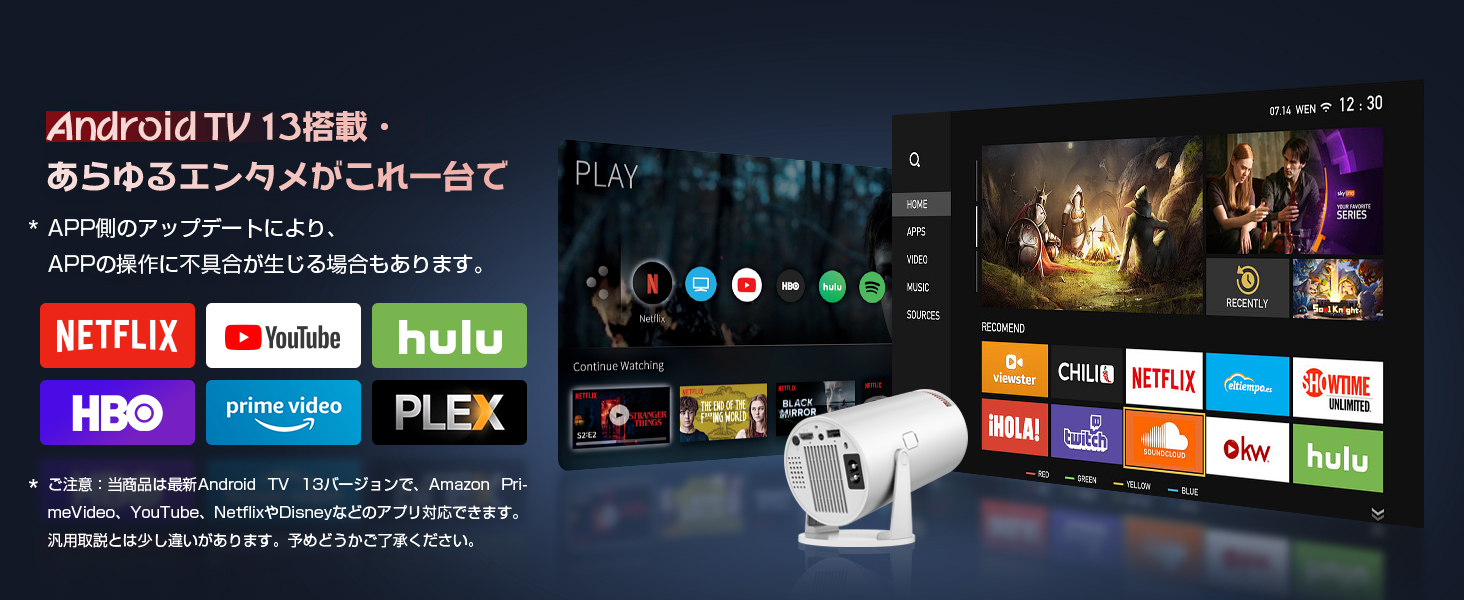 Android TV 13.0が搭載されており、YouTubeやNetflixなどのアプリも簡単にインストールして視聴できます。スマホやPCとの接続も簡単で、Wi-Fi6を活用して瞬時に接続できる点も大きな特徴です。
