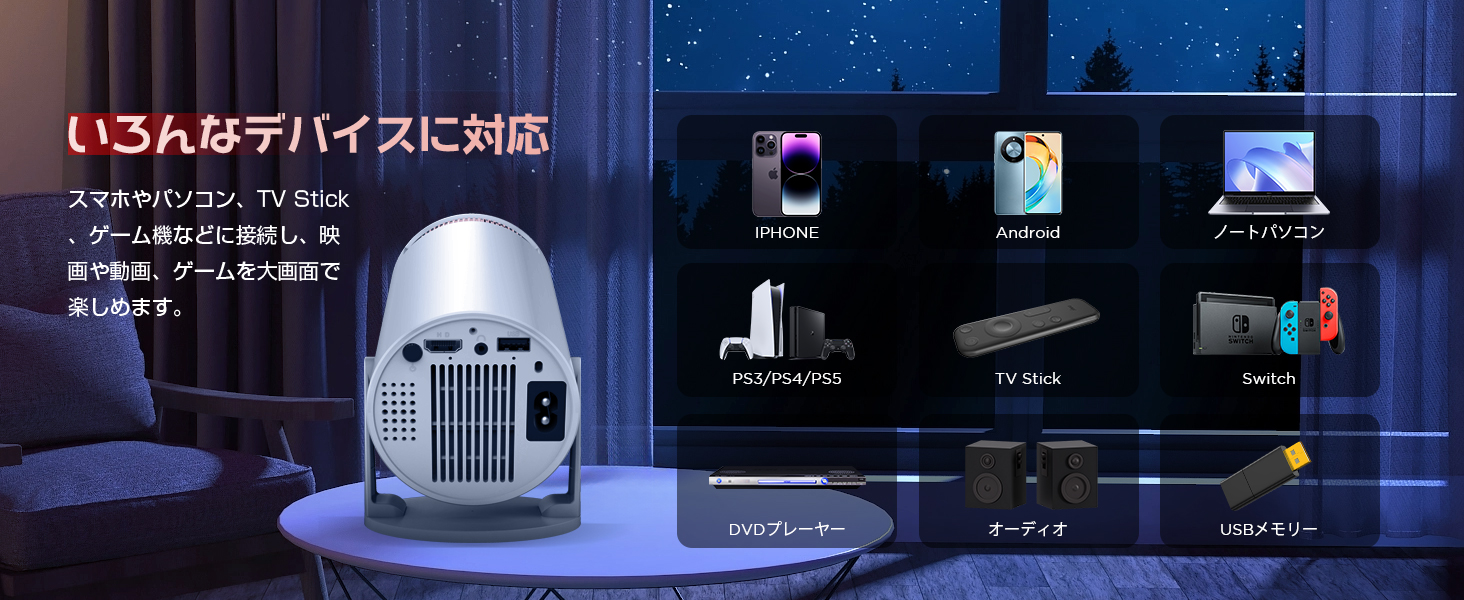 4Kに対応しており、詳細な映像が楽しめます。もちろん、1080PのフルHD画質でも十分高精細な映像が得られますので、映画やゲームで臨場感あふれる体験が可能です。