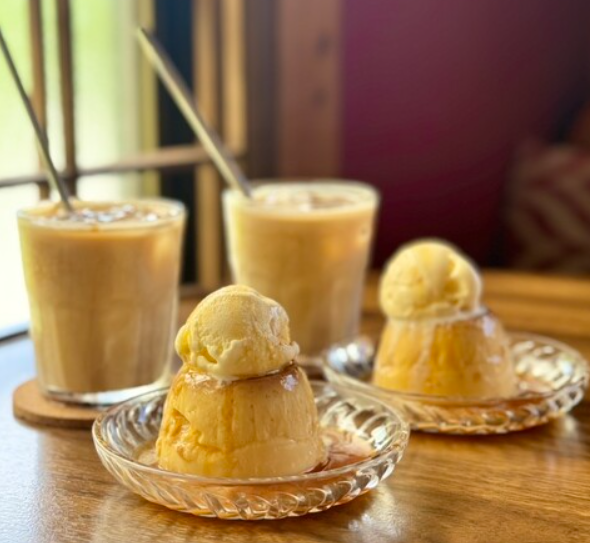 やちむん(沖縄の伝統陶器)に囲まれた自然豊かなカフェで、沖縄らしいスイーツが楽しめます。店内ではやちむんの購入もでき、旅の思い出にも◎