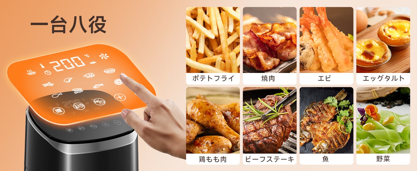 温度設定やタイマーはタッチ操作でスイスイ。表示もわかりやすく、料理初心者でも迷わず使えます。予熱機能もあり、時短調理が可能。