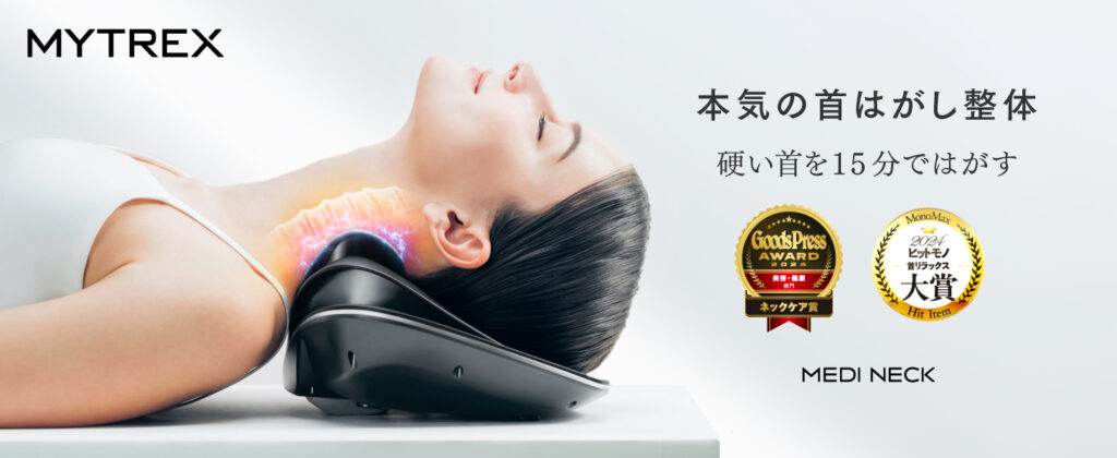 肩こりや首こり、スマホ首(ストレートネック)に悩む方に今、大注目されているのが、MYTREXの「MEDI NECK」。