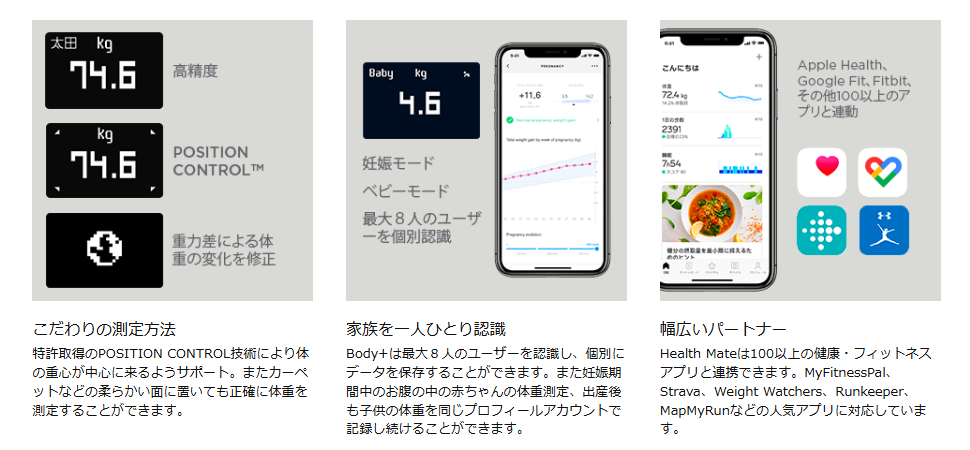 Withingsは医療機器メーカーとしての実績もあり、体重・体脂肪の測定精度の高さにも定評があります。