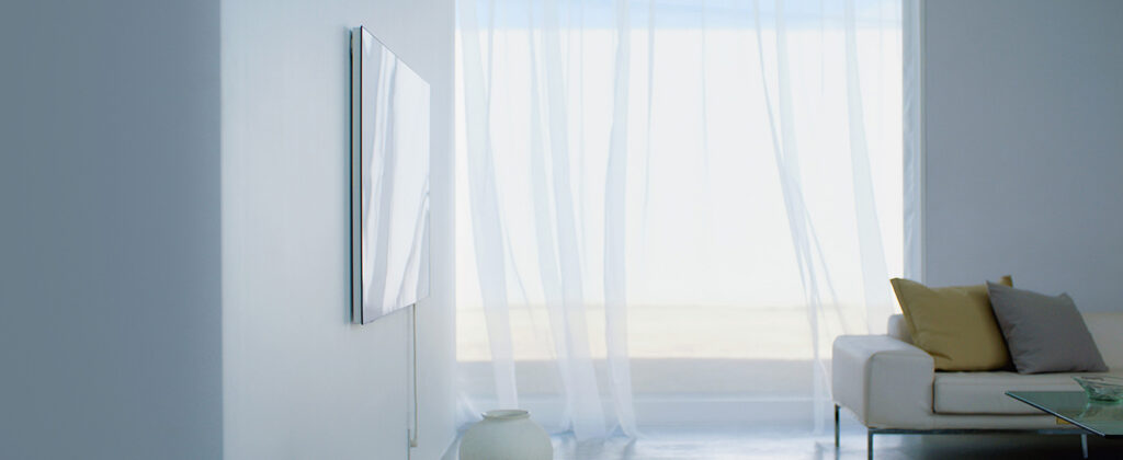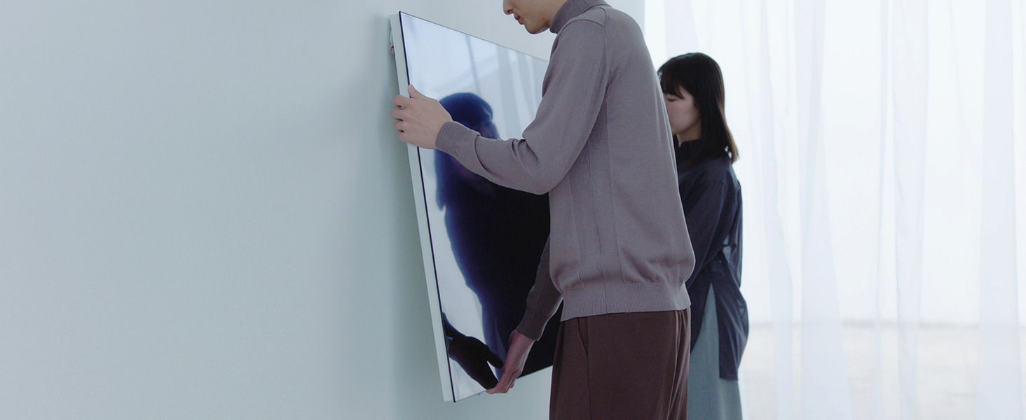 - 超薄型デザインにより、まるで絵画のように壁とフラットに設置可能。