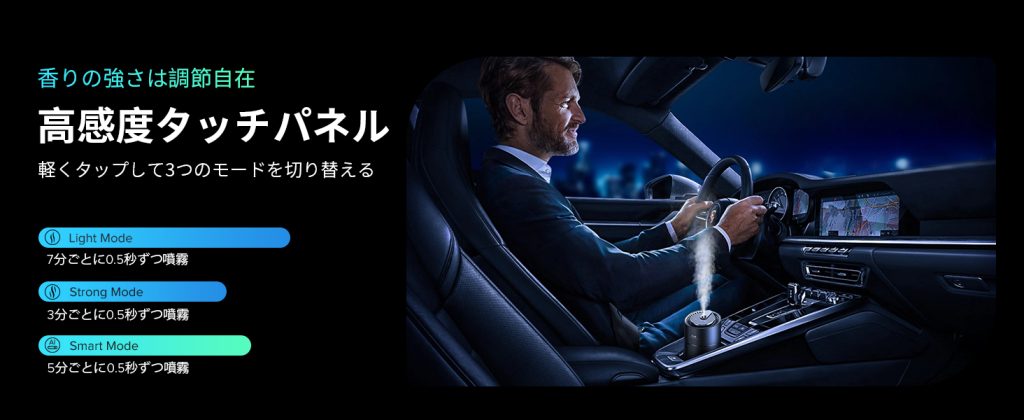 超音波霧化技術を採用しているため、音が静かで車内でも気になりません。香りは優しく広がり、運転に集中できる環境を保ちながら、心地よいリラックスタイムを提供します。