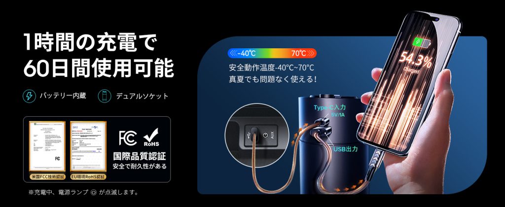 ✔ 静音設計 → 車内でも音が気にならず、快適に使える!