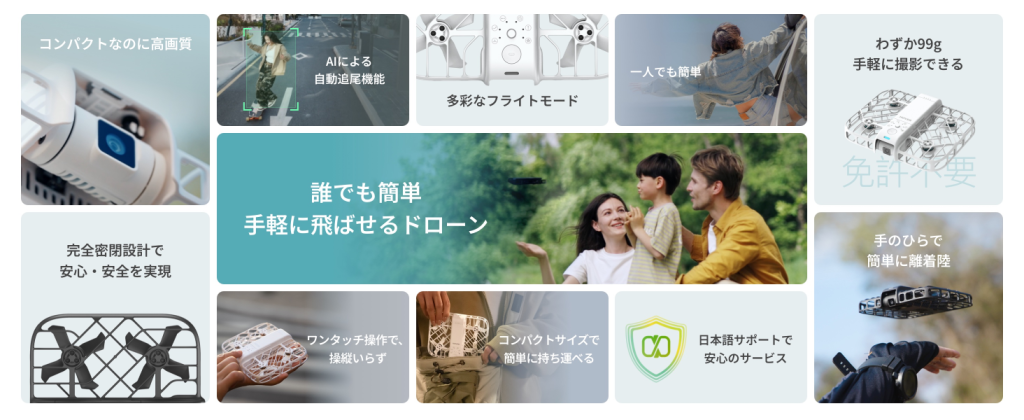 - 初心者ドローンユーザー: 操作が簡単で免許不要なので、初めてドローンを使う方でも安心して楽しめます。