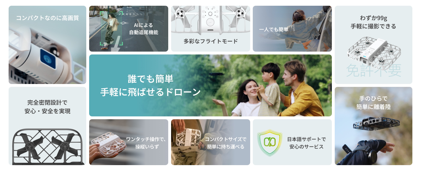 - 家庭での使用: 自宅での空撮にも便利。公園や広場で家族や友達とのイベントを撮影したり、風景写真を撮ったりするのにも適しています。