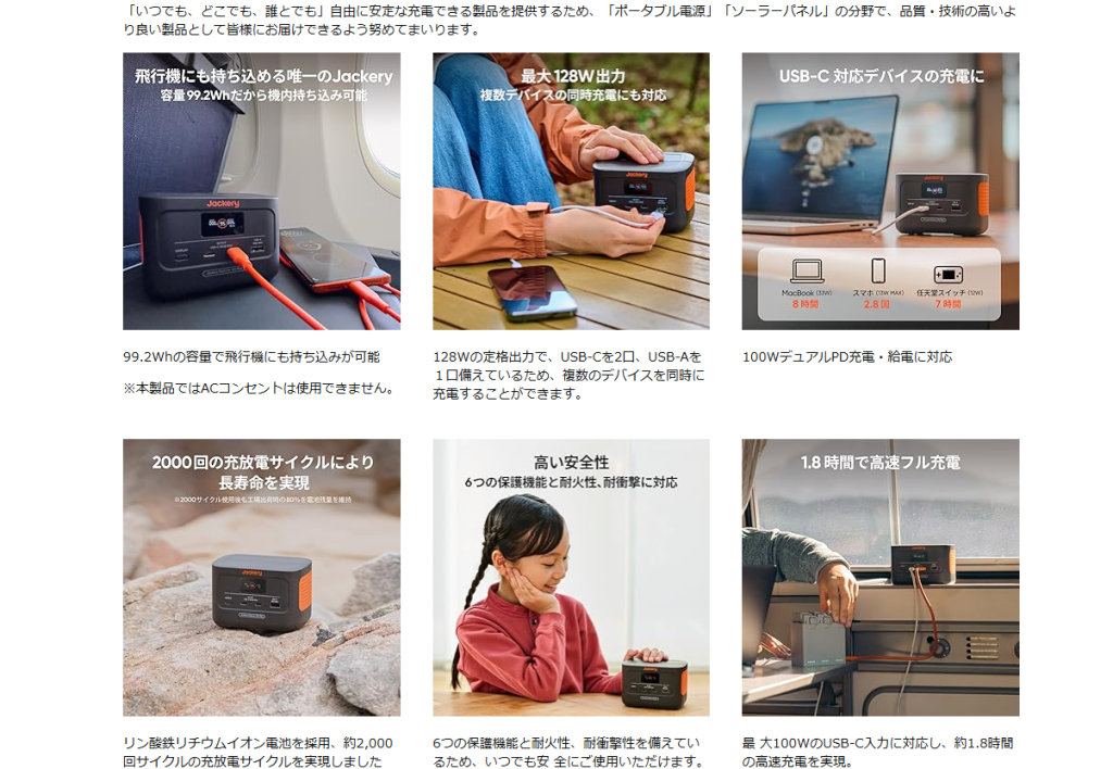🎯 Jackery ポータブル電源 240 Newの特徴