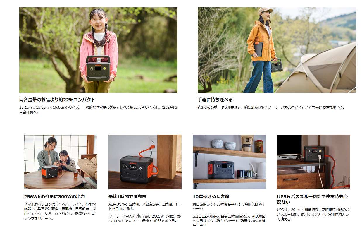 Jackery 240は、災害時だけでなく普段のアウトドアシーンでも非常に使いやすい一台。