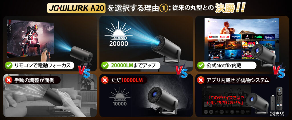 ① 業界初の「公式Netflix搭載」プロジェクター!