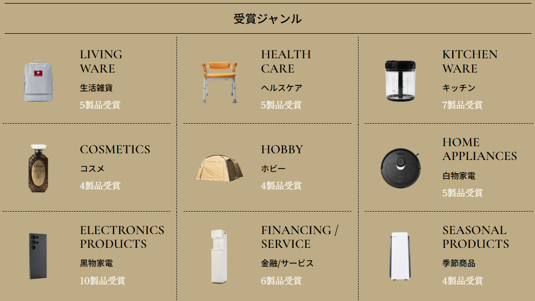 - 【生活雑貨】【美容】【家電】などカテゴリー別に表彰