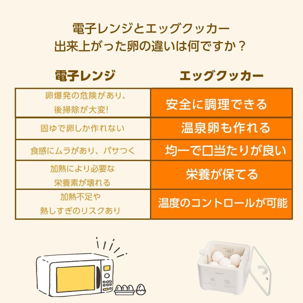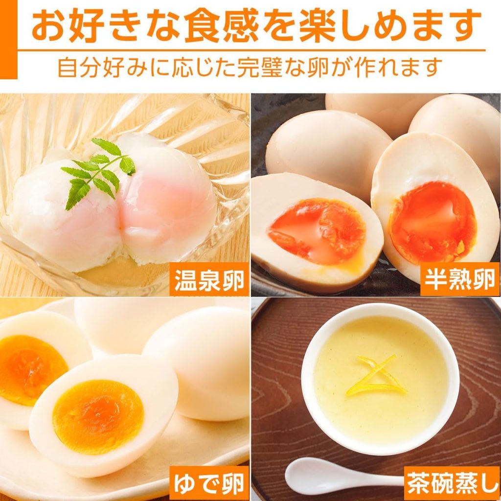 - 完璧な卵料理:ゆで卵や温泉卵、半熟卵などを失敗なく作れる