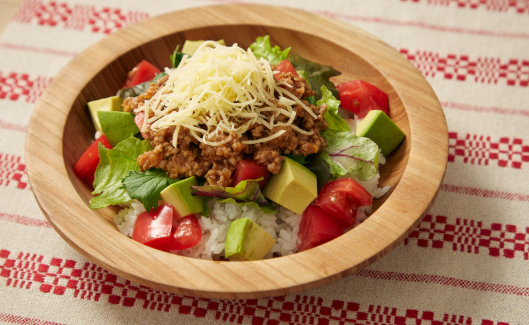 メキシカン風のご飯料理で、肉やサルサソース、チーズがのったボリューム満点な一品です。おしゃれなカフェで食べるタコライスは、デートにもぴったりです。