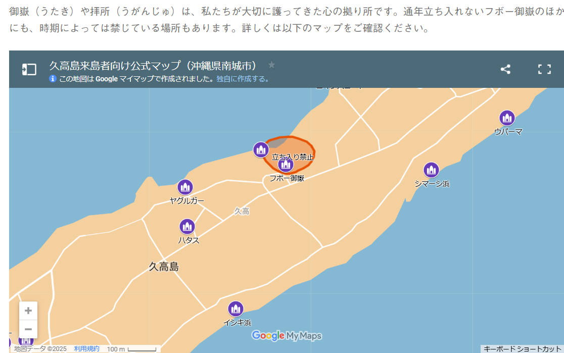 前述のフボー御嶽をはじめ、島には立ち入り禁止の聖域が複数あります。