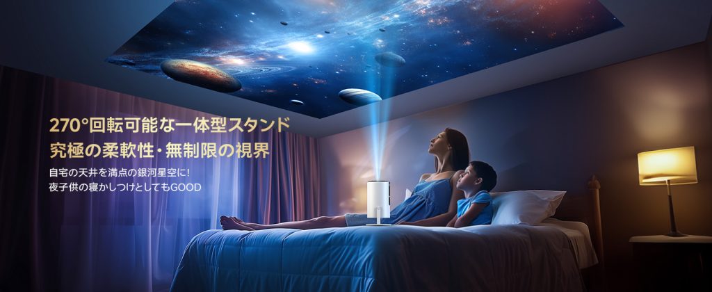 ✅ 2. 270°回転&天井投影対応!寝室シアターにも最適