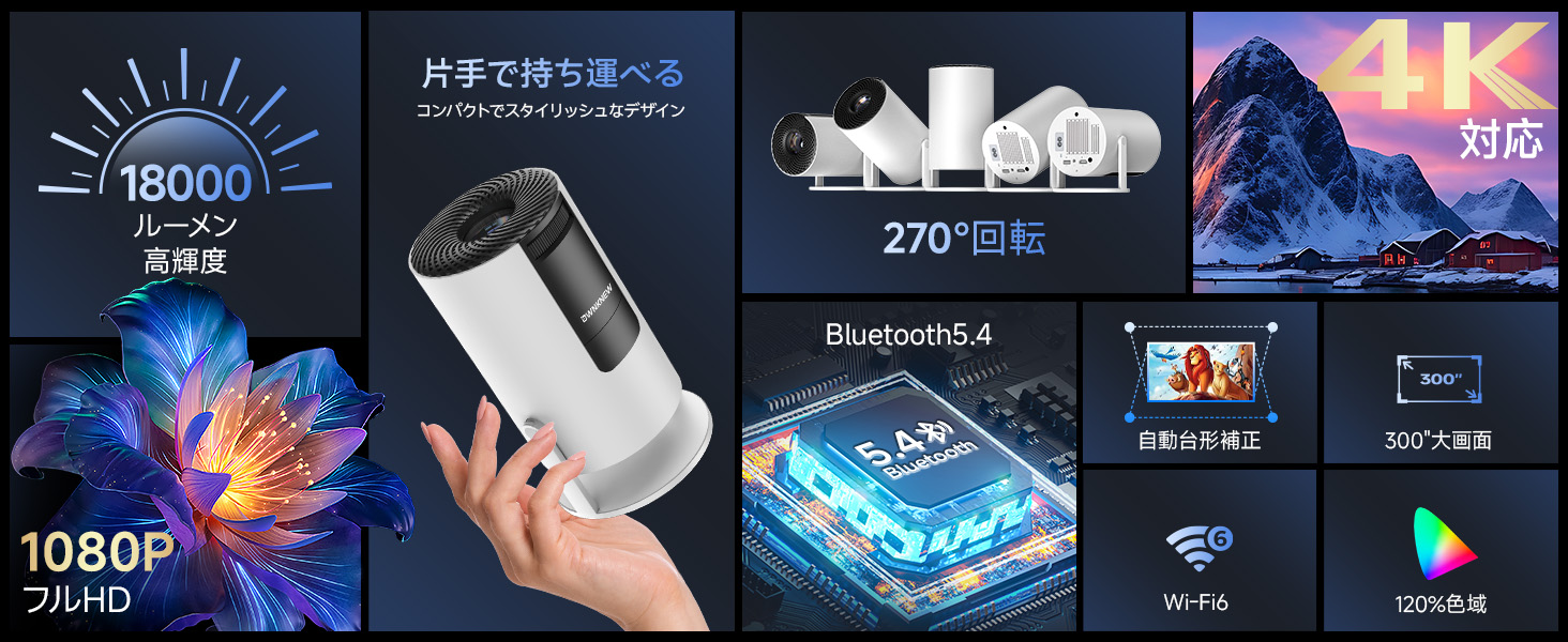 - 🔄 台形補正:知能自動台形補正(±45°)、270°回転可能