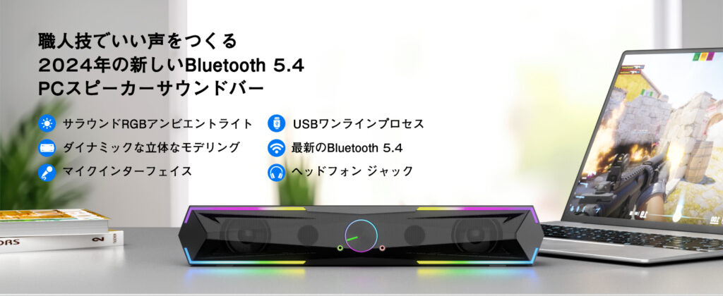 デスク周りをスタイリッシュに演出しながら、大迫力のサウンドを楽しみたい。そんなあなたにぴったりなのが、今回ご紹介する「Kstime 最新Bluetooth5.4対応 サウンドバー」です。