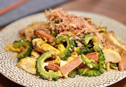 沖縄ならではの苦味が特徴的なゴーヤーを使ったチャンプルー。こちらも外せない沖縄料理です。
