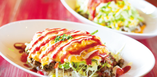 特徴: 人気のオムレツタコライスが楽しめます。