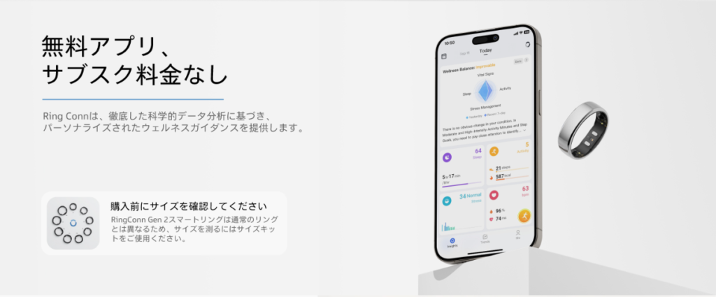 • サブスク料金が完全無料: 他の有名リング(Oura Ringなど)と違い、全機能が月額無料で使えます。
