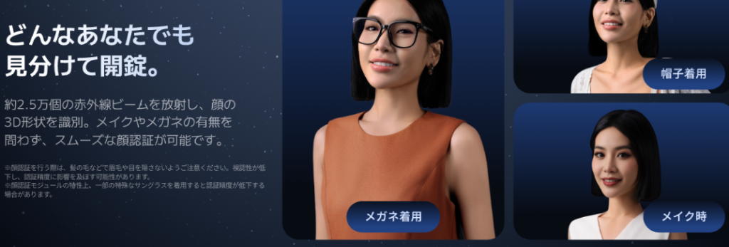 「静脈認証」は、カメラに手を近づけすぎないのがポイント。顔認証の反応があまりにも良すぎるため、正直静脈を使う機会が減るほどですが、マスク着用時や暗所でのバックアップとして機能しているのが評価の高さに繋がっています。