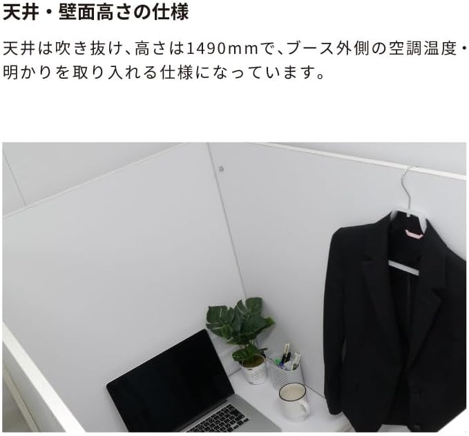 - パーテーション効果: ボックス型のパーテーションで、周囲の音や視覚的な気 distractionsから隔離され、外部の邪魔を受けずに集中できます。