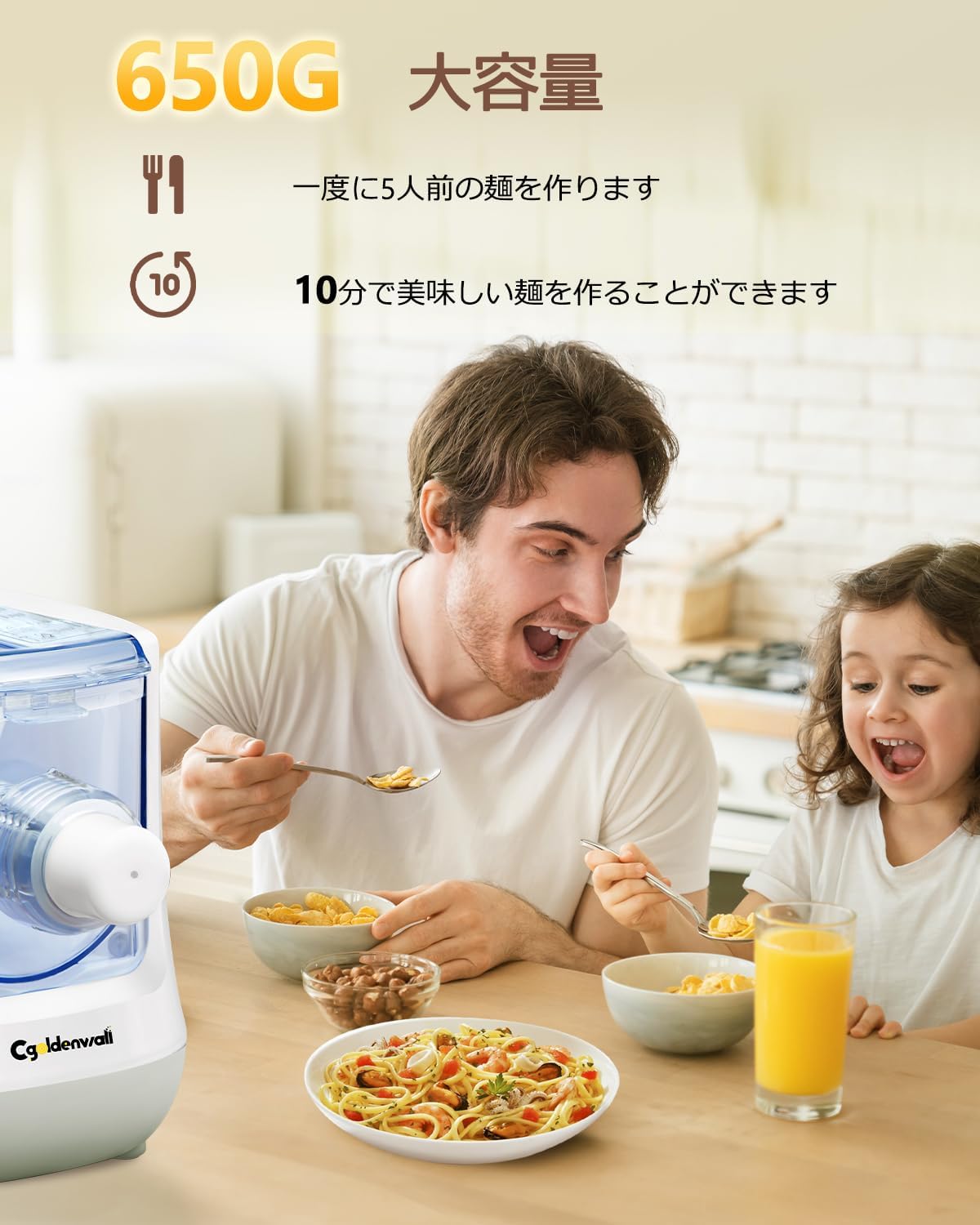 - フレキシブルな麺の種類:ラーメン、うどん、パスタ、そばなど、さまざまな麺を作ることができ、家庭での麺料理を楽しめます。