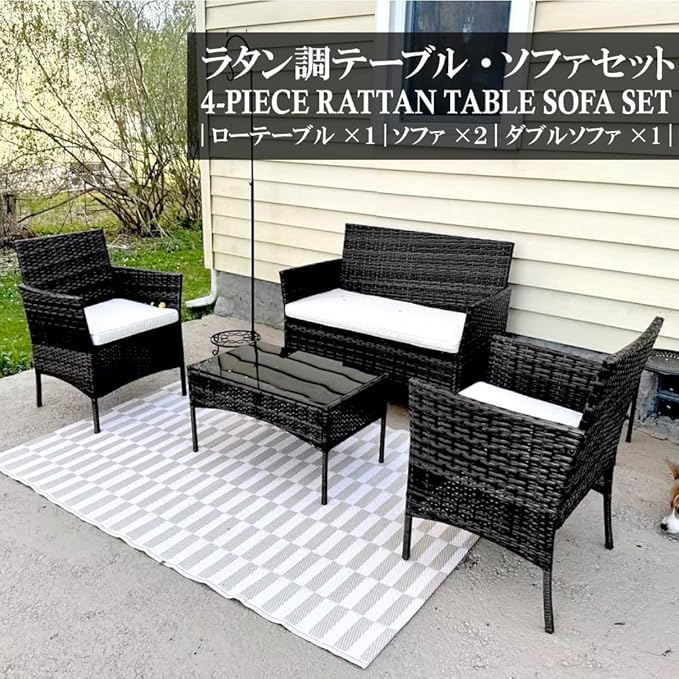 ラタン調ガーデンソファ4点セットは、見た目・快適さ・機能性のバランスが非常に良いアイテム。