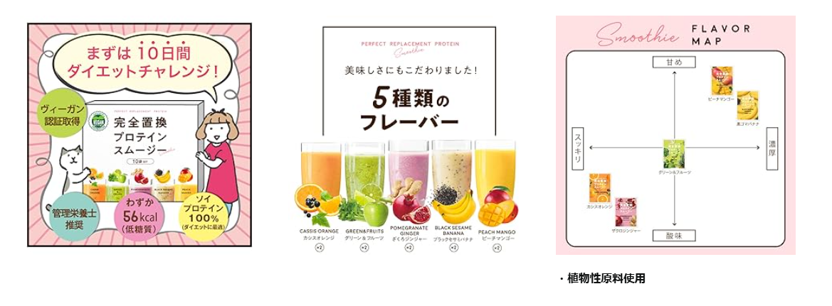 | 完全置換スムージー | 約15-20g | 5種類 | 約3,000円〜 | 定期便割あり、1食完結 |