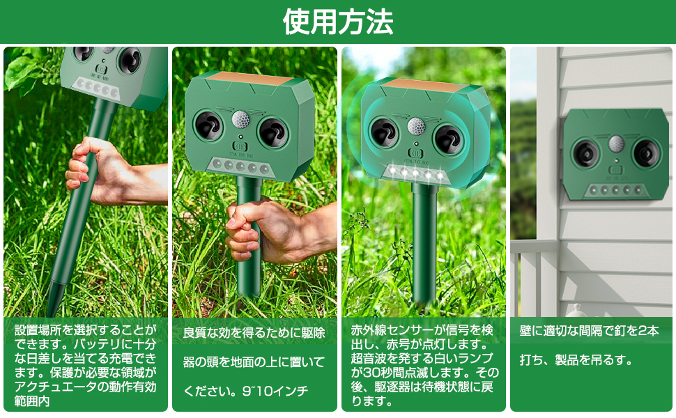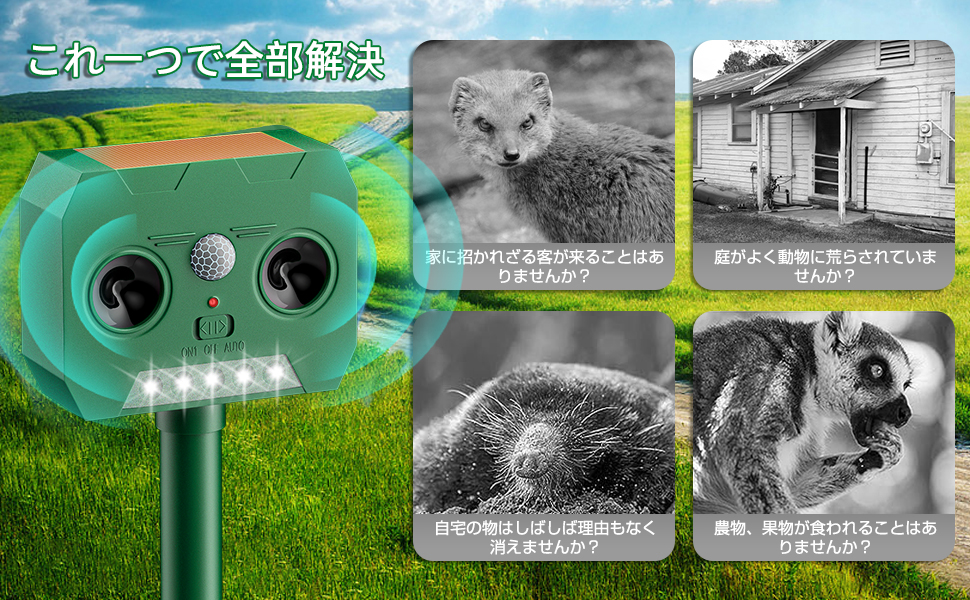 - 「イタチが屋根を駆け回るので購入。センサーのライトの感度も良く、超音波も中々良かった。」