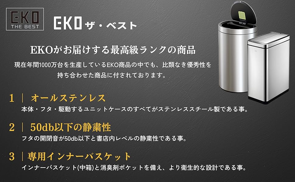 Amazon|EKO ゴミ箱 自動開閉 デラックスファントム シルバー 45L センサー ふた付き インナーボックス有り EK9287MT-45L|フタ付きゴミ箱 オンライン通販