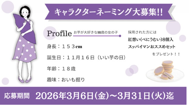 現在、パッケージに描かれている「お芋が大好きな女の子」の名前を公募しています。これ、プロフィールの設定がかなり細かいんです(笑)。