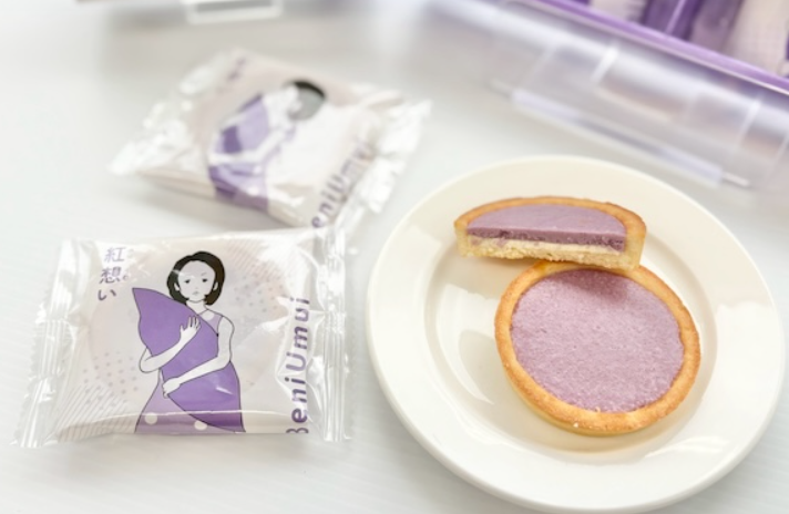 「紅想い」は、沖縄県産の紅芋を使用した丸型のチョコタルトです。ネーミングの「うむい」は沖縄の方言で「想い」を意味し、旅の記憶や大切な人への気持ちが込められています。
