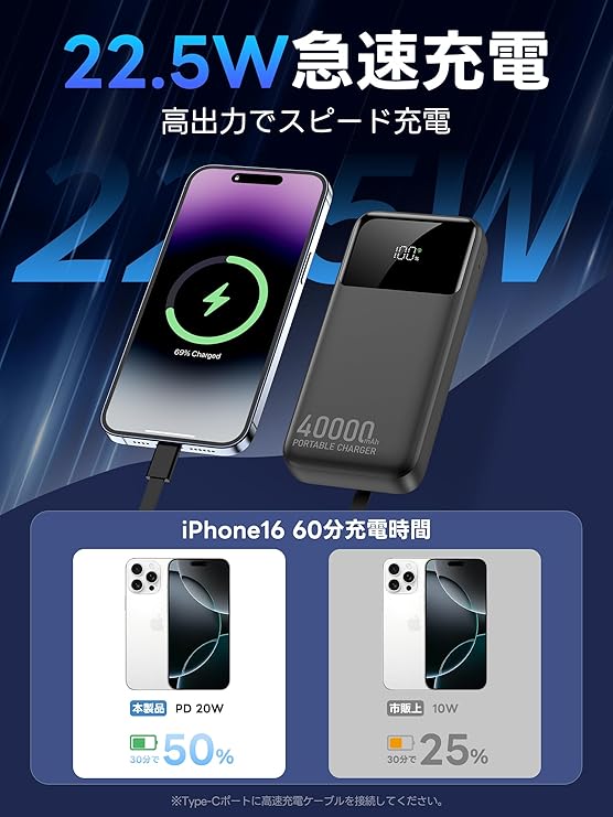 ⚡ 圧倒的な「大容量+急速充電」