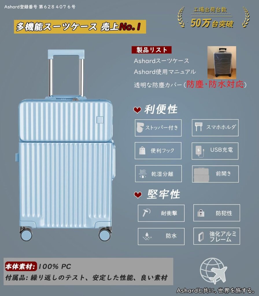 💼【Ashard 多機能スーツケース】97L Lサイズ(7泊~長期旅行対応)