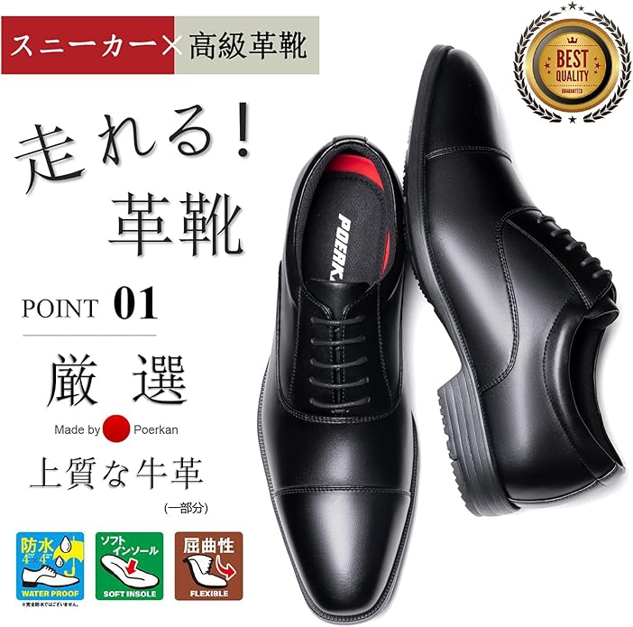 Poerkan ビジネスシューズ メンズ 走れる本革の特徴