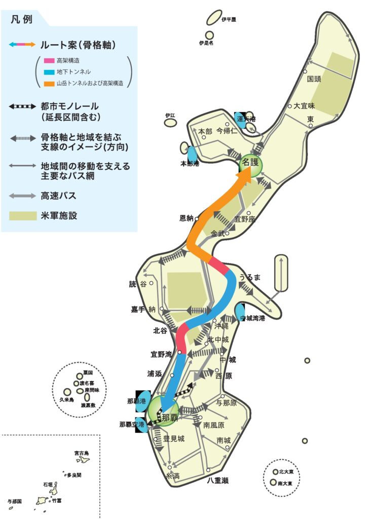 那覇空港エリアから名護市までを約1時間で結ぶことを目指す巨大プロジェクトです。
