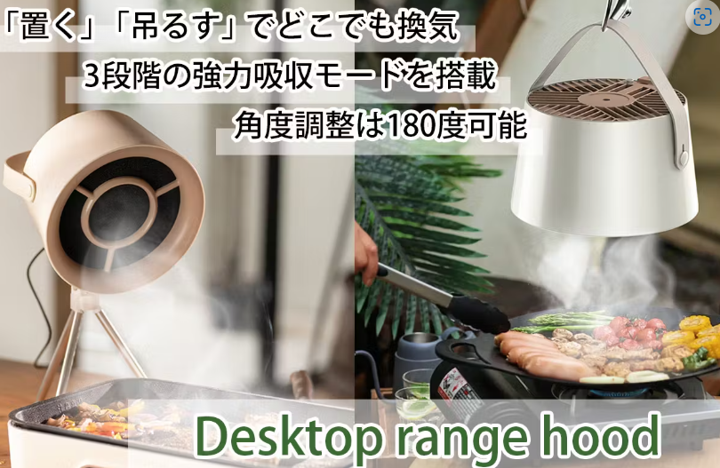 従来のレンジフードは固定式ですが、卓上型はコンパクトで持ち運びが簡単。リビングやダイニング、さらにはアウトドアでも活躍します。収納時も場所を取らず、必要な時にサッと取り出せるのが魅力です。