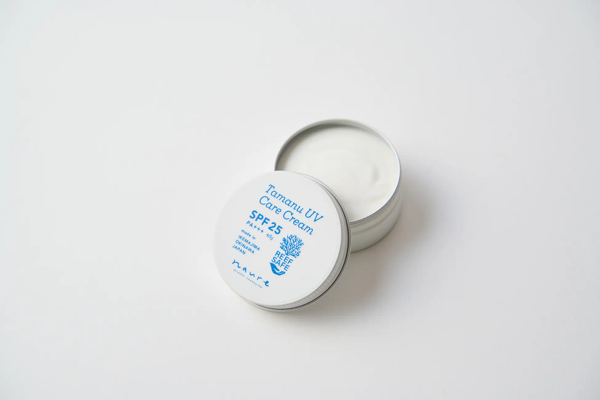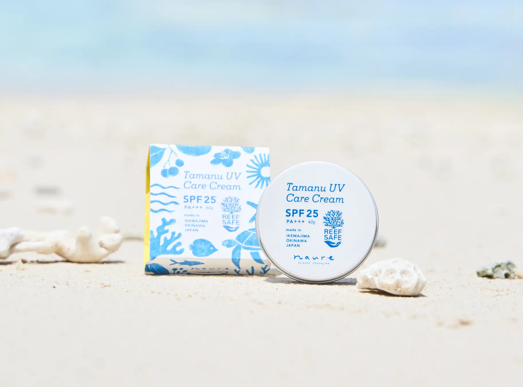 2025年6月11日から販売されるのは、「ナウレ タマヌUVケアクリーム」。宮古島産の植物成分を贅沢に使用し、自然由来指数100%・ノンケミカル処方・REEF SAFE(リーフセーフ)対応と、こだわりがぎっしり詰まった逸品です。