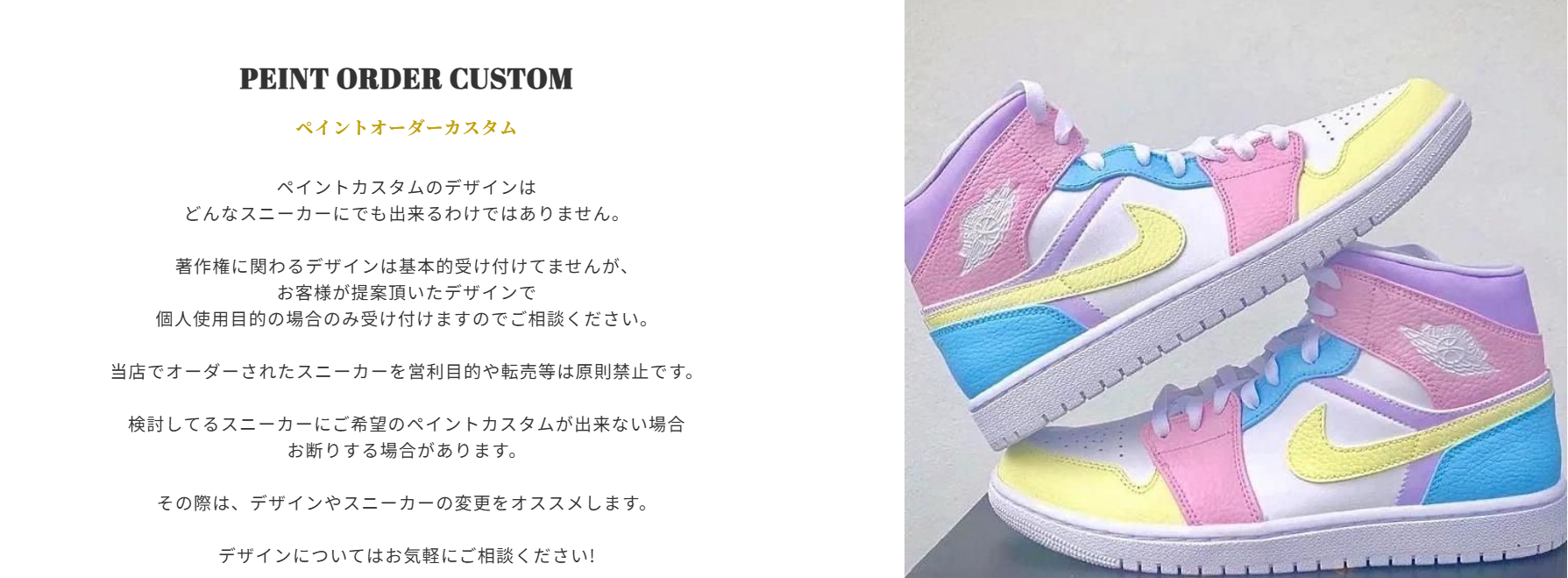 ベースに使用したいスニーカーの写真をご連絡下さい。