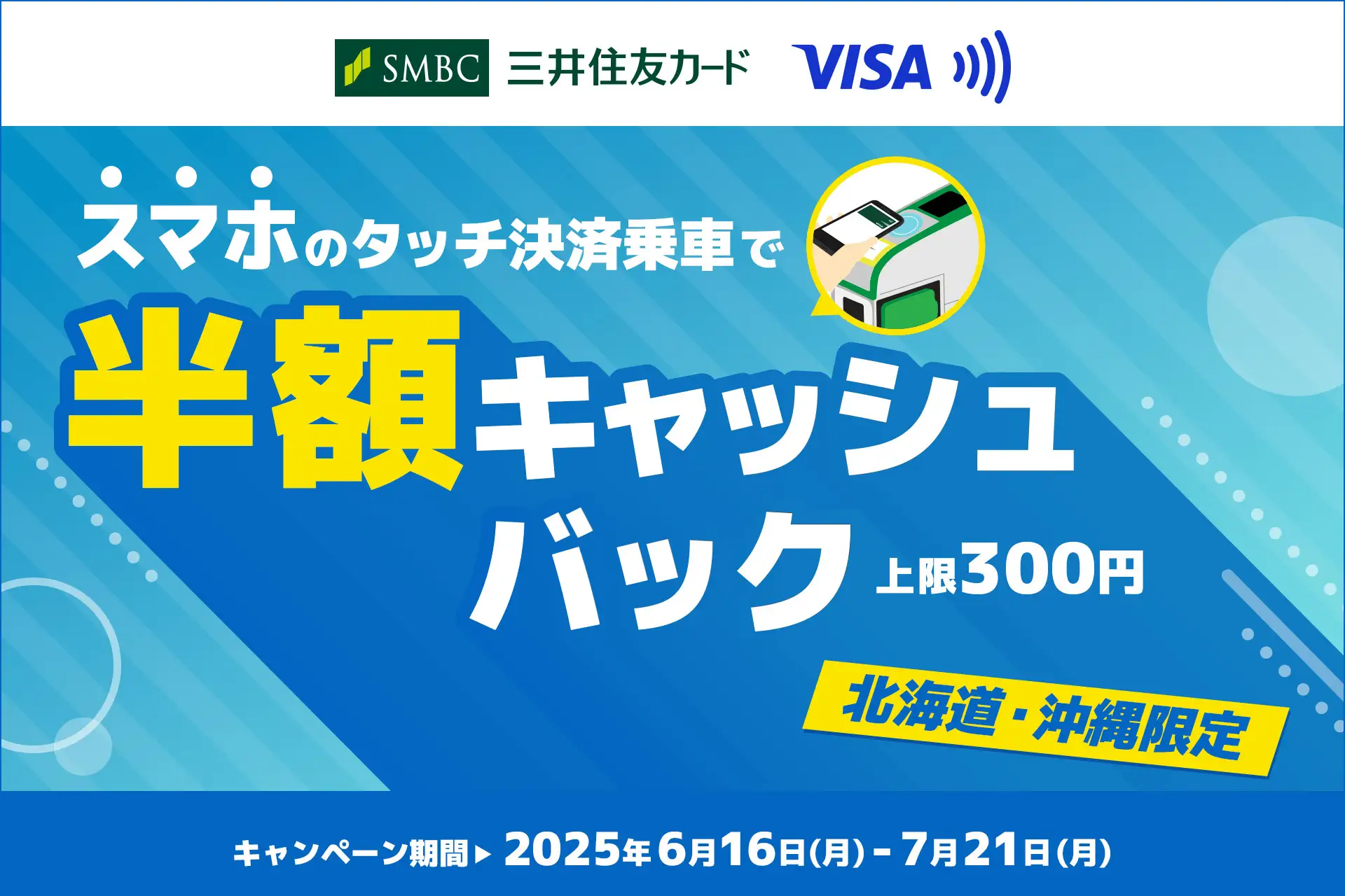 **三井住友カードが「沖縄限定・スマホのタッチ決済で交通費が半額キャッシュバックされるキャンペーン」**を開催中です!