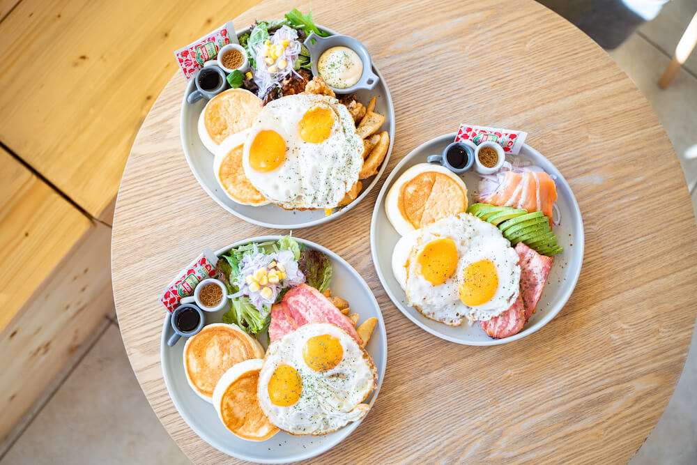 - 紅芋パンケーキとフルーツスムージーが大人気。