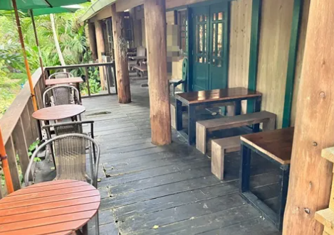 - 緑に囲まれた隠れ家カフェ。島食材のランチが絶品。