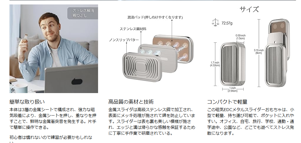 でもその内部には強力な磁石とスライド構造が組み込まれ、スライドするたびに指先に「気持ちよさ」が伝わる設計になっています。