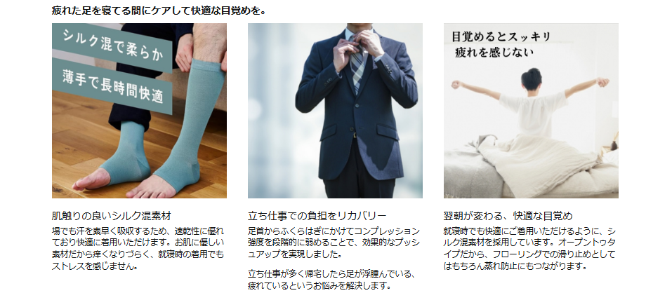 - 睡眠中に血行促進し、脚が軽く感じる