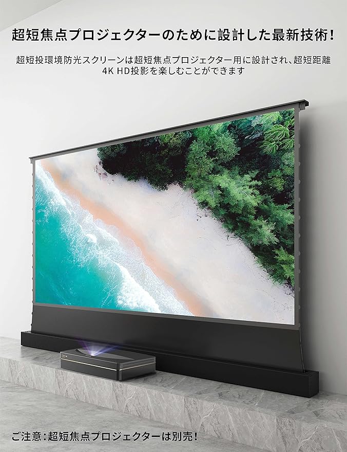 特に**超短焦点プロジェクター(例:XGIMI Aura、VAVA、LG HU715Qなど)**との組み合わせで