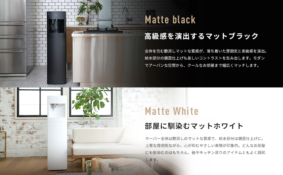 「コーヒーメーカーとウォーターサーバーを別々に置くと場所を取る…」という悩みを解決する、画期的なデザインです。