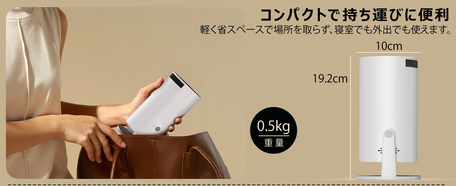 → 一般的なモバイルプロジェクターと比べると、ややボリュームがあります。設置予定のスペースを事前に確認しておくと安心です。収納袋やキャリーケースを活用するのもおすすめ。